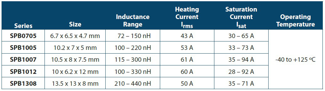 Bourns Magnetics' SPB0705, SPB1005, SPB1007, SPB1012, and SPB1308 series power bead inductors feature a high-rated current, low DC resistance, and shielded construction for low magnetic field radiation. The high-rated current, low loss, and multiple footprint features of these inductors make them well-suited for multi-phase regulators, power processors, memory modules, servers, storage, data centers, networking systems, and graphic cards.
