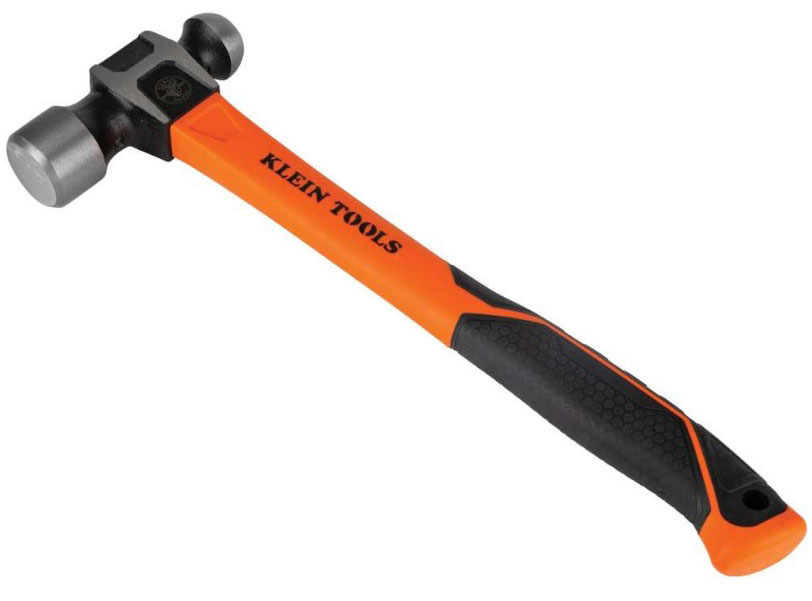 Klein Tools' ball-peen hammer featuring a 32 ounce forged steel head and a 15 inch overall length is made of high-strength fiberglass for optimal shock absorption. The durable handle features a non-slip grip for comfort and a hang hole for tethering or hanging storage.